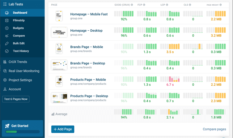 - Additionally, you have a Lab Test report comparison feature that lets you add monitored pages from the Dashboard for comparison.