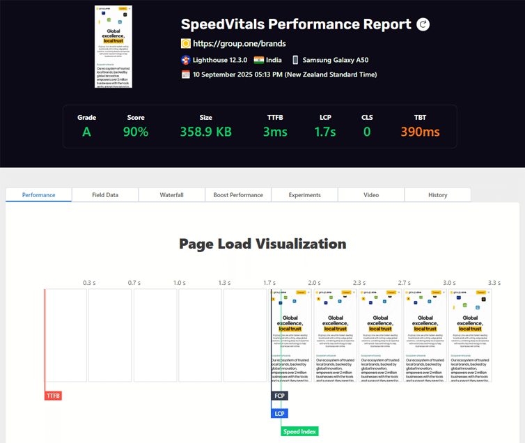SpeedVitals is similar to GTmetrix in many ways as it also runs Lighthouse and the UI/UX and reports have a similar look and feel to GTmetrix.