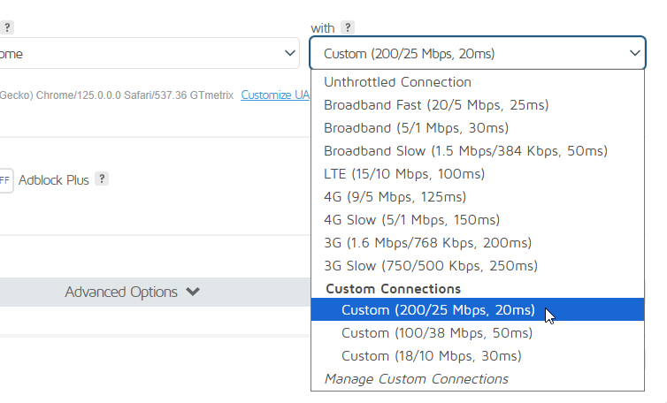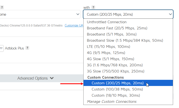 Custom Connection Speeds are available with PRO plans only. Upgrade to GTmetrix PRO to get access to this feature and many more!