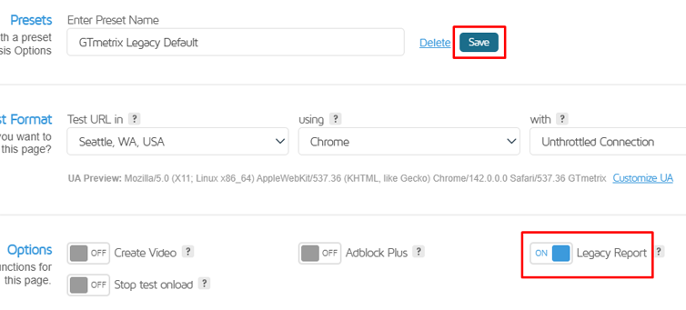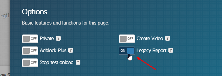 Note that GTmetrix tests will only generate Legacy Reports if you enable this option.